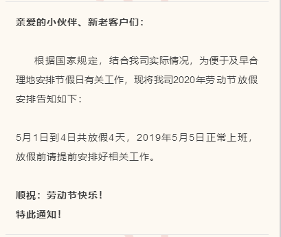 5月1日到4日共放假4天,2020年5月5日正常上班